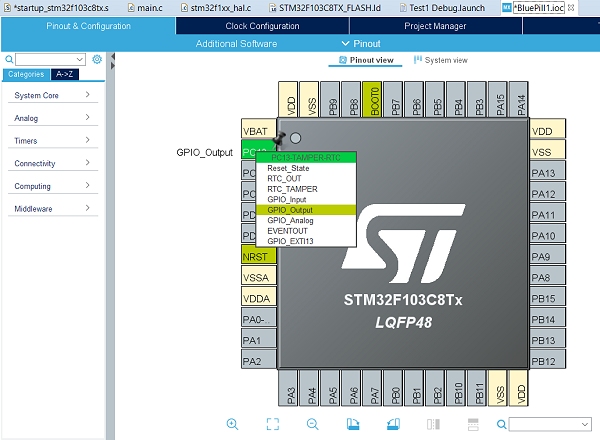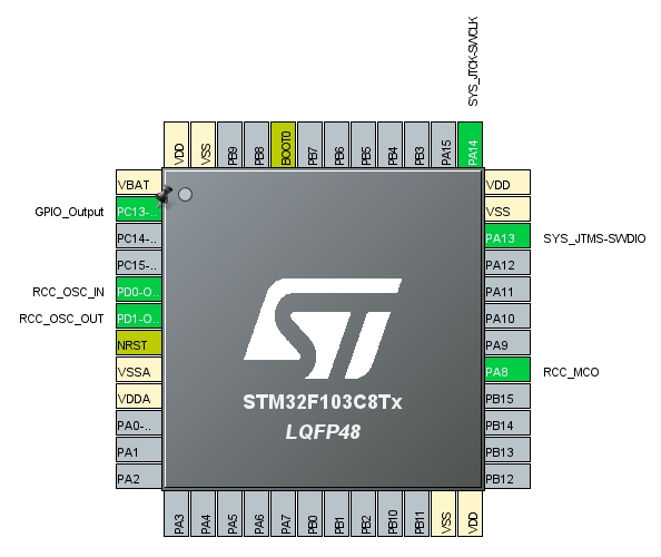 Die Pin-Übersicht zeigt nun, welche Pinne belegt sind. PC13 habe
