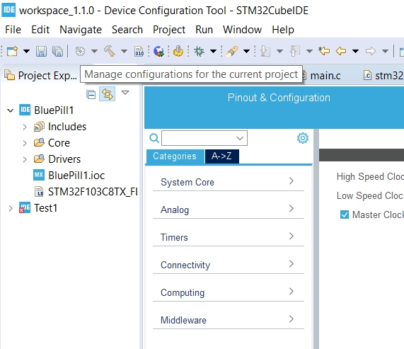 ich mit BluePill1.ioc wieder in die Pin-Übersicht, kann dort was