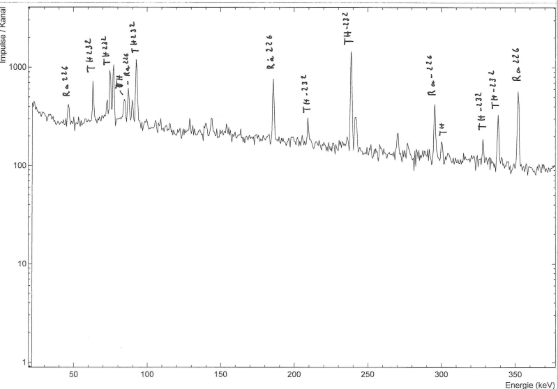 dem TH-232 zuordnen. Die Menge wird etwa ein halbes bis ein Bequerel