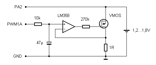 Der gewünschte Strom wird über das Poti an ADC0 eingestellt.