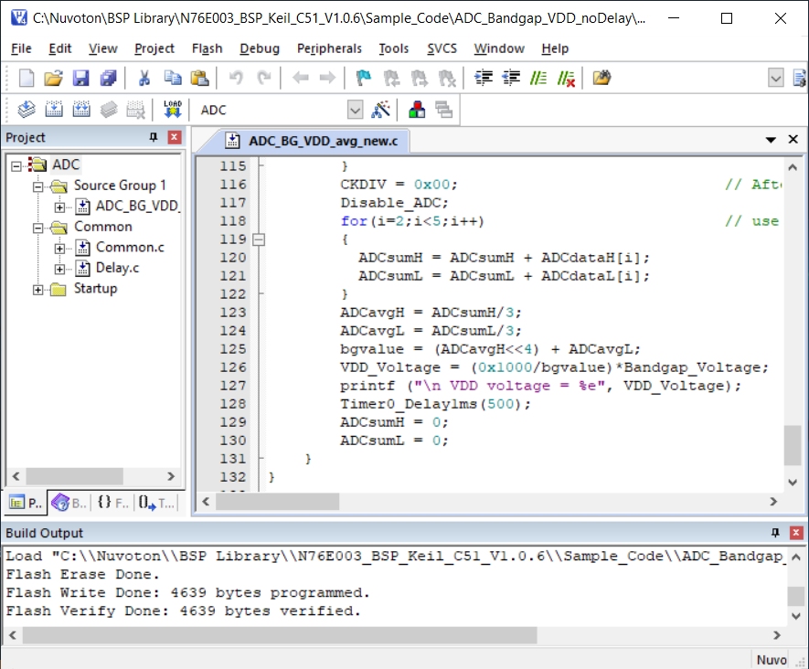 Beispielprojekt Output\ADC_Bandgap_VDD zeigt die Eigenschaften des