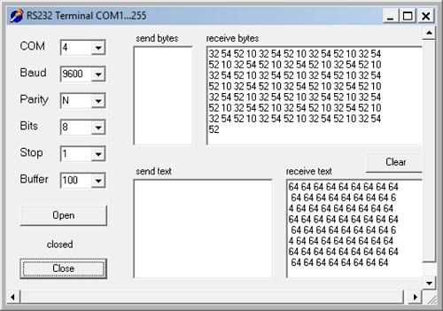 Die Daten erscheinen nun an COM4. Bei offenem Eingang P17 pendelt sich