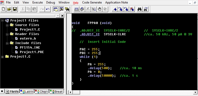 .ADJUST_IC SYSCLK=ILRC //ca. 50 kHz, 50 µA @ 3V