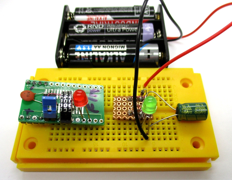 Vergleich habe ich meinen anderen Blinker mit auf das Steckboard