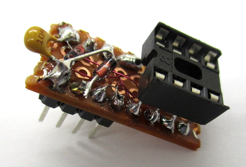 verwendet. Eine aufgelötete Drahtfeder soll das IC in Position halten.
