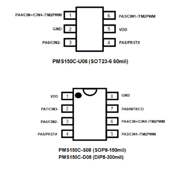 Padauk. Der PMS150C ist weitgehend kompatibel mit dem PFS154, aber nur