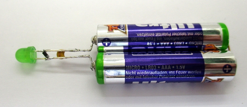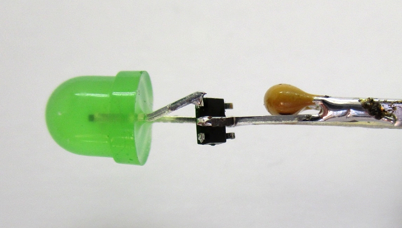 direkt unter die LED mit internem Widerstand gelötet. Der Anodendraht