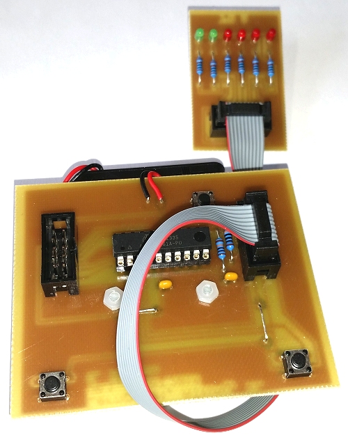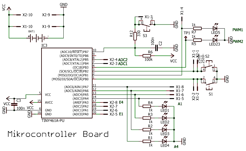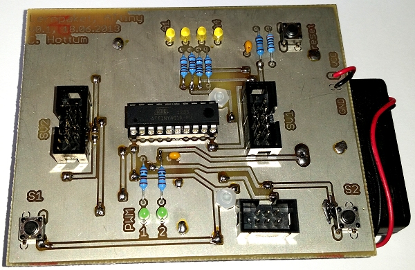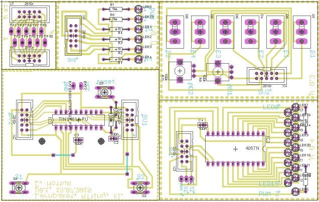 mit 3 Tasten (S1(PB0), S2(PB2) und reset(PB7)), 4 digitale Eingängen (PA0 - PA3),