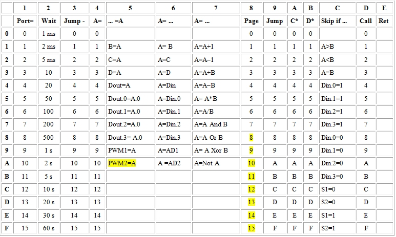 wurde die Befehlstabelle um die Befehle 5A (PWM2=A) und 88 bis 8F