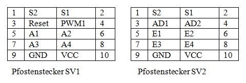 2 ADC Eingänge (PB4 - PB5), 4 digitale Ausgänge (PA4 - PA7),