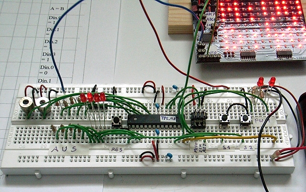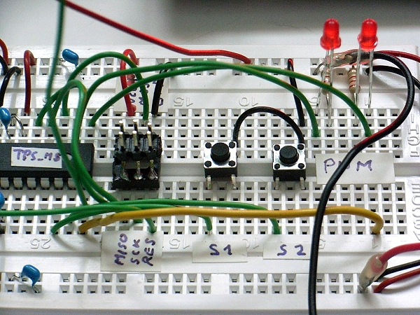Da ich gerade einen Atmega8 sowie ein Steckboard zur Hand