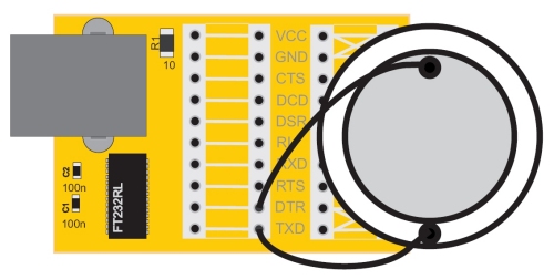 Taktsignals. Beim Anschluss zwischen TXD und DTR liegt ein