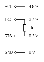 Schalten Sie einen Widerstand von 1 kΩ zwischen RTS und TXD. Messen Sie dann