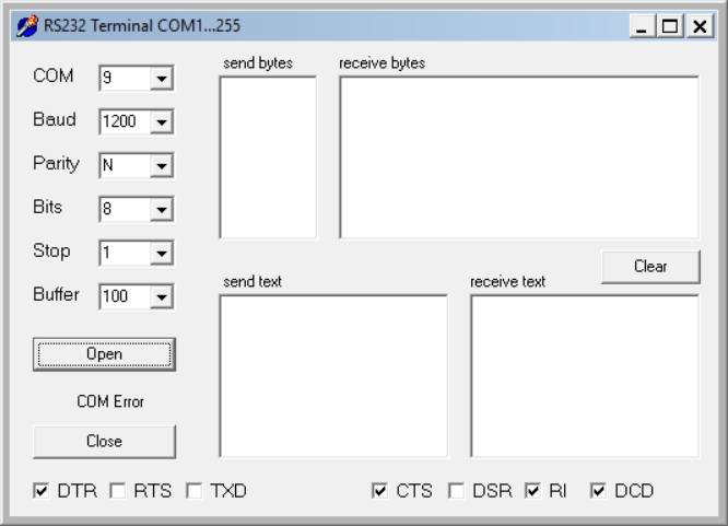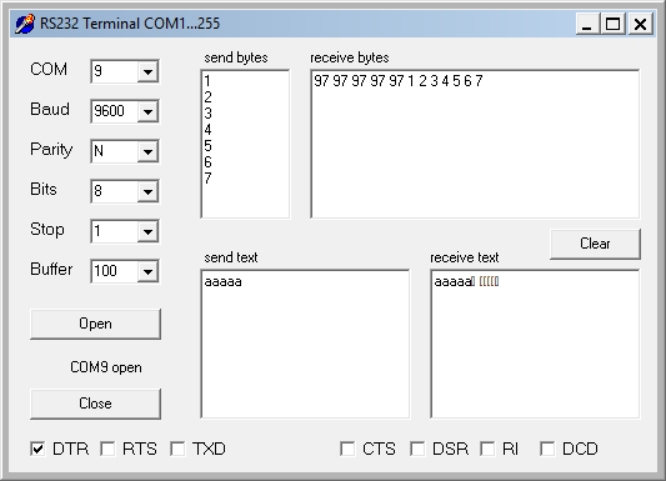 Baud. Achtung, damit tatsächlich Daten gesendet werden, muss man DTR