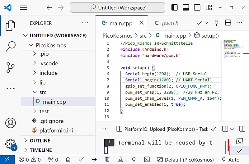 Das Pico-Programm öffnet zwei serielle Schnittstellen und stellt über