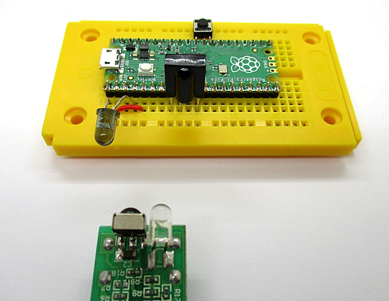 MicroPython vorgestellten IR-Transceiver. Aber weil diesmal Einzelbytes übertragen werden müssen, war die Aufgabe mit Arduino-C leichter zu lösen.