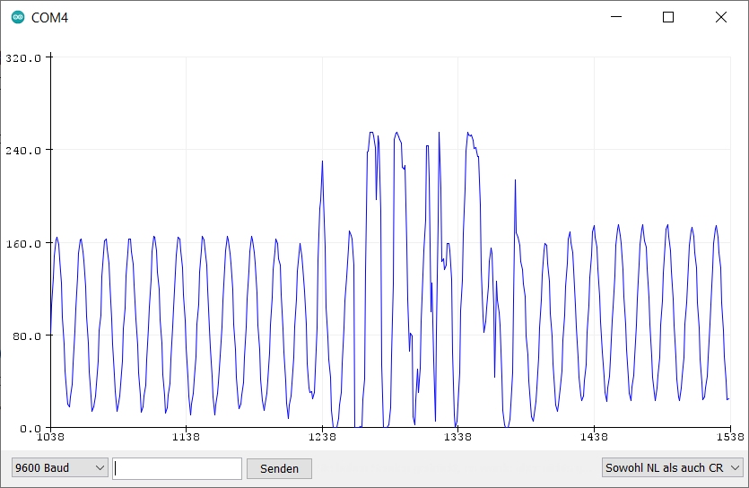 Plotter der Arduino-IDE geschrieben. Nach dem Hochladen darf man