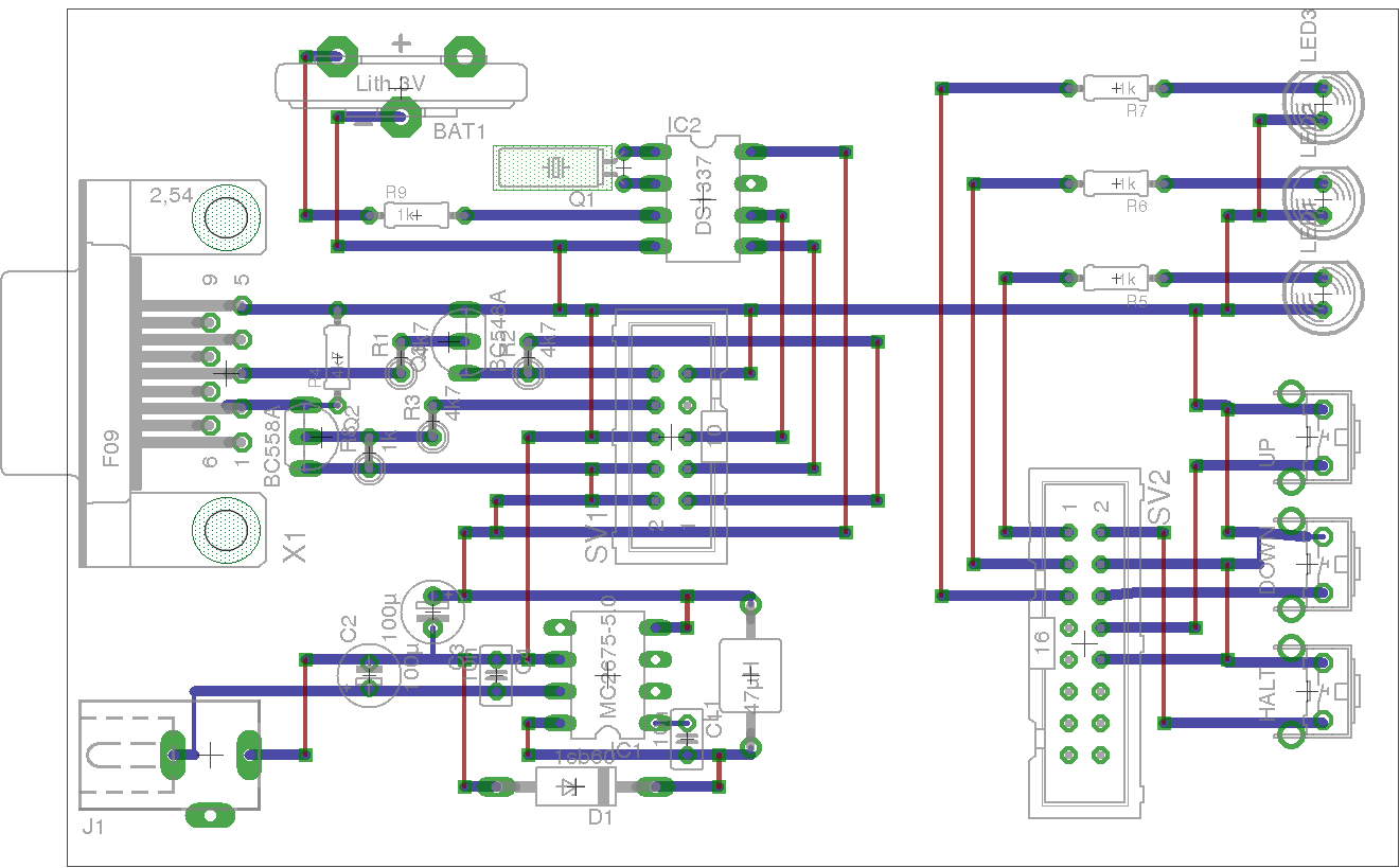 Die Hardwareuhr und der Pegelwandler für die serielle Schnittstelle sind in einem separaten Beitrag beschrieben.
