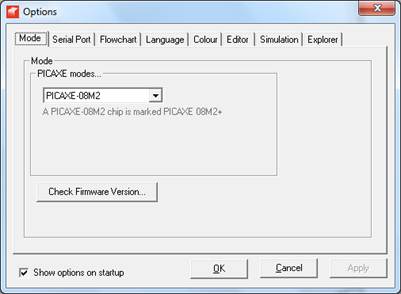 Bild 6 Optionen PICAXE Programmeditor, www.picaxe.com