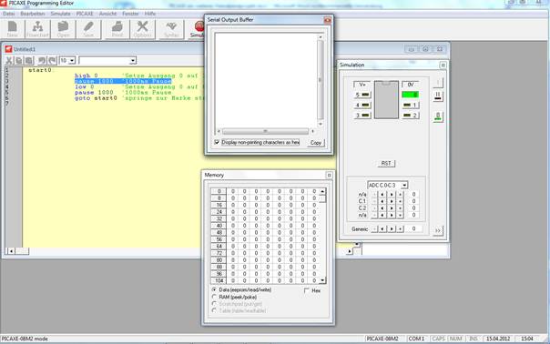 Bild 5 Programmeditor PICAXE mit Simulator, www.picaxe.com