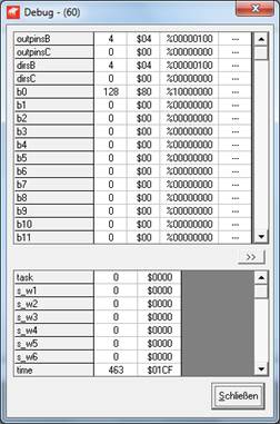 Bild 15 Debug – Fenster zeigt die aktuellen Werte der PICAXE Register