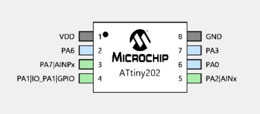 // (AIN7) PA7 1 3| |18 5 PA0 (nRESET/UPDI)