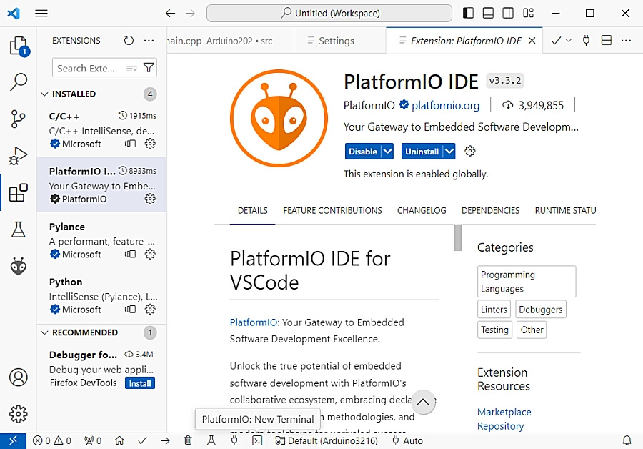 PlattformIO vorgeschlagen, das nun installiert werden kann. Jede