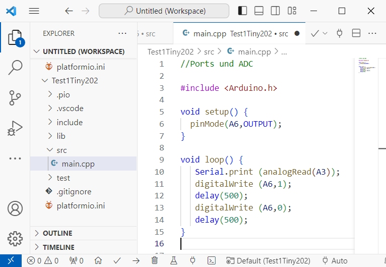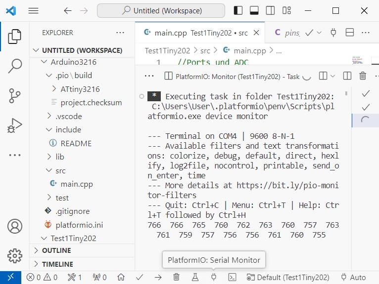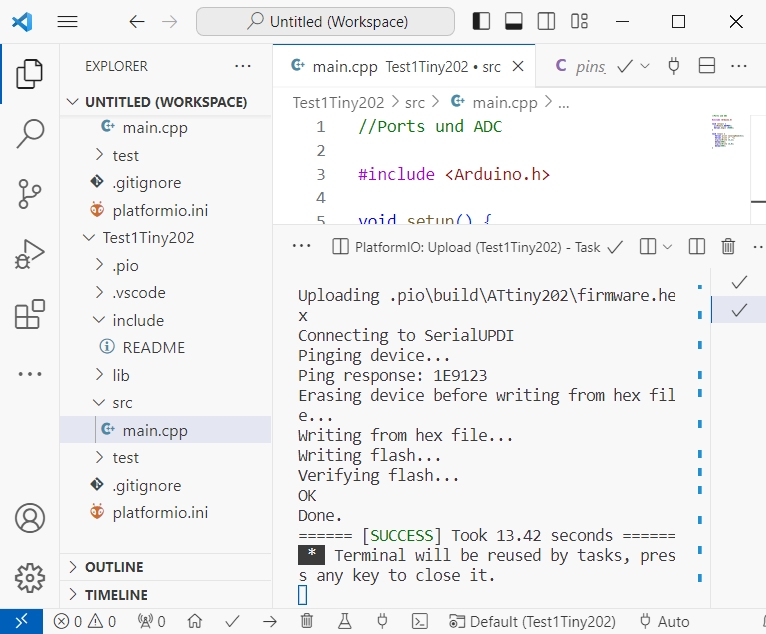 Damit sind VSCode und PlatformIO erfolgreich in Gang gesetzt. Manches