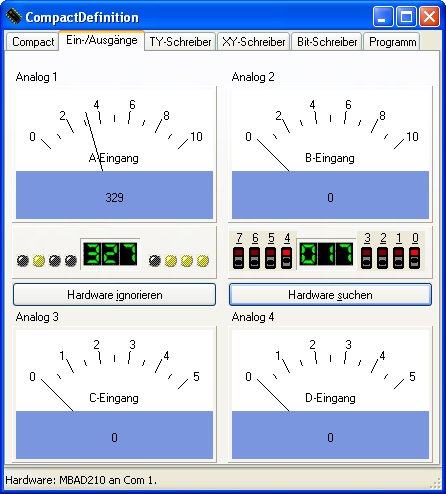Das Programm CompactDefinition von H.-J. Berndt (Download) unterstützt zahlreiche Interfaces, darunter auch das AD210. Ein Klick auf „Hardware suchen“