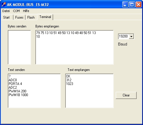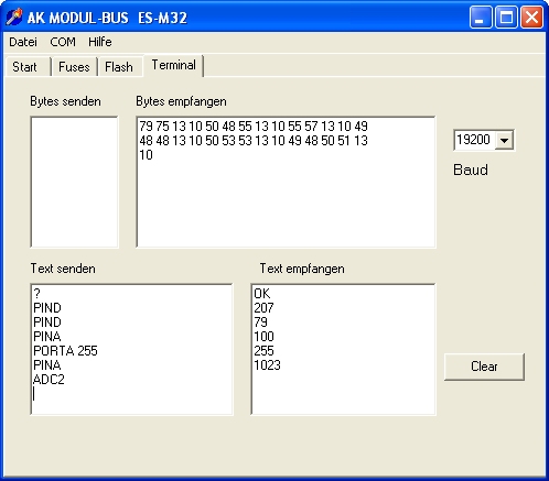'-------------------------------------------------------------- ' ESM32 Interface 2, ASCII-Kommandos ' ATMEGA32, 11,0592 MHz, 19200 Baud '--------------------------------------------------------------