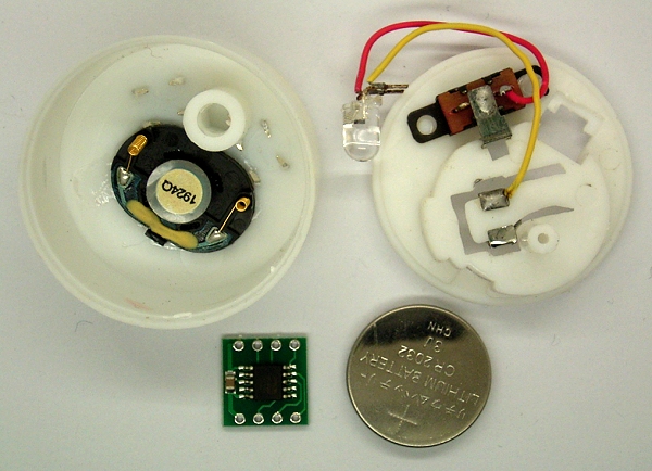 Das Breakout-Board BK1068 ist so klein, dass man damit sehr spezielle Radios bauen kann. Hier sollte ein ganz besonders kleines UKW-Radio entstehen. Als Gehäuse dient eine LED-Kerze mit 3-V-Litiumbatterie und Schalter. Statt der LED wurde ein Mini-Lautsprecher aus einem alten Handy eingeklebt.