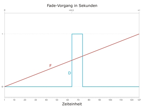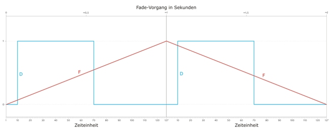 die Dauer des Fadevorgangs, eine Zahl zwischen 1 und max. 127 (Einheit