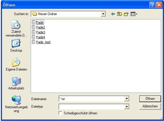 Editieren der Datei Fade.txt, Fade2.txt usw., die zum