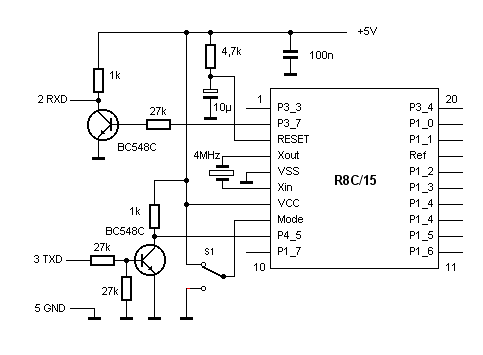 gesendet und am Pin 9 (P4.5) empfangen. In dieser Schaltung werden zwei