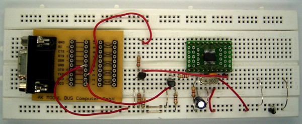 Der Versuch wurde hier auf einer Steckplatine aufgebaut. Die Elexs-Platine