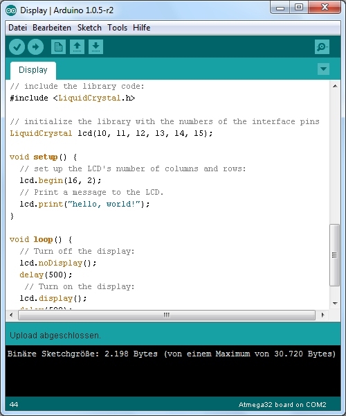 Für das LCD gibt es die Arduino- Library LiquidCrystal.h.
