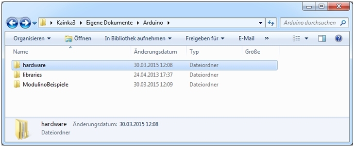 Sketchordner bereits ein Ordner mit dem Namen „hardware“