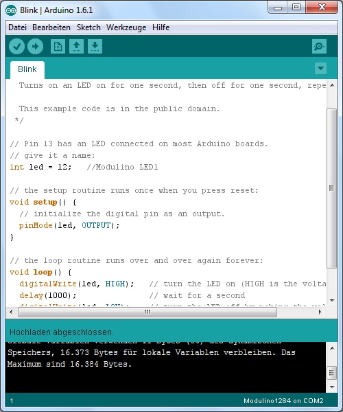 (Modulino1284) und die richtige Schnittstelle (z.B. COM2) eingestellt