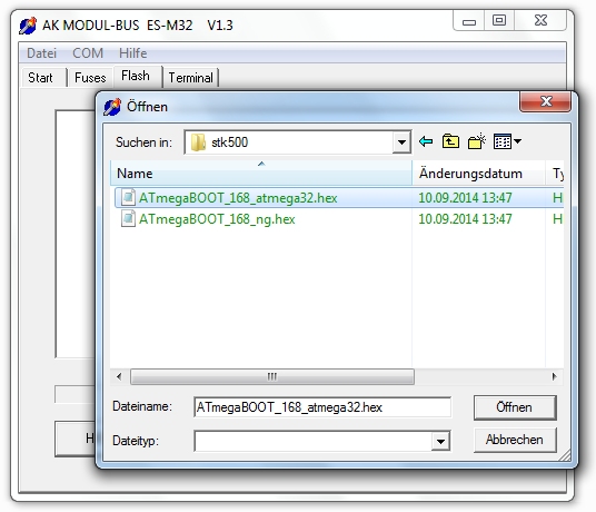 Schritt 4: Laden Sie die neueste Version des Programms ESM32V13.zip (siehe auch Bascom-Bootloader) oder verwenden sie das ESM32.exe aus dem Ordner ModulinoBootloader.