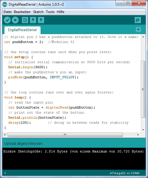 kompilieren und laden. Achtung, beim Upload müssen Sie manuell Reset