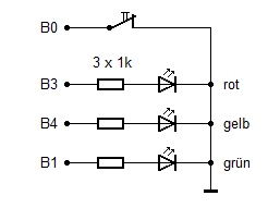 vorhanden. Die drei Ampel-LEDs werden über Vorwiderstände an die Ports