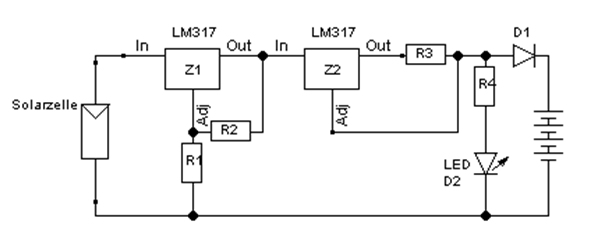 Akkus. Von mir verwendete Werte: R3 mit ca. 37 Ohm liefert 110 mA