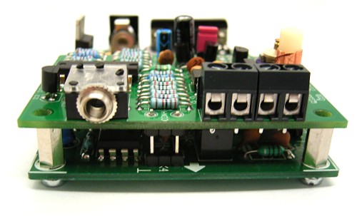 Zusatzplatine. Am Ausgang kann statt der Schraubklemmen alternativ die