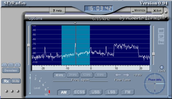 Der Screenshot zeigt das Programm beim Empfang eines AM-Senders im 49-m-Band