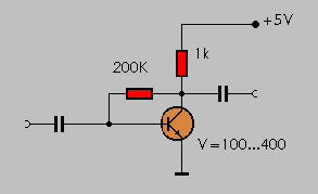 Transistor funktioniert. Die Faustregel lautet: Rb = Rc*V, wobei für