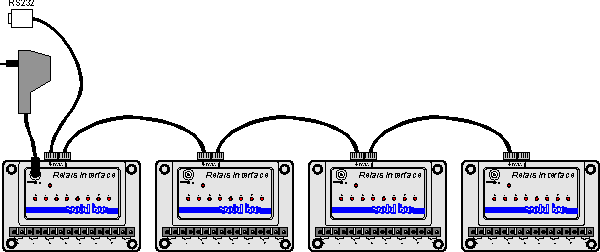 Mehrere Karten lassen sich an einer Schnittstelle betreiben. Dazu erhält jede Karte eine Busadresse (ID), die per Software zugewiesen werden kann und im EEPROM permanent gespeichert bleibt, aber auch jederzeit änderbar ist. Der PC sendet Kommandosequenzen, die neben Steuerbytes auch die ID-Adresse im Bereich 1 bis 16 enthalten.