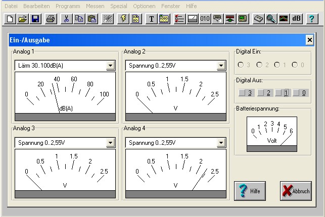 Die ZELLE verwendet den vierten Analogkanal doppelt als Messeingang und zur Überwachung der Batteriespannung. Im DL410 wurden zwei zusätzliche AD-Kanäle für die Messung der Akkuspannung und der Netzteilspannung verwendet. Damit die Batterieüberwachung in Zellabor verwendet werden kann, wird in der Emulation der vierte Messkanal ausschließlich für die Batterieüberwachung verwendet. Damit stehen nur drei Anschlüsse für externe Sensoren zur Verfügung.