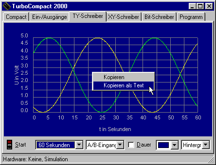 Mit der rechten Maustaste werden die Messdaten als Bild oder als Text in die Zwischenablage kopiert und stehen somit anderen Anwendungen zur Verfügung.