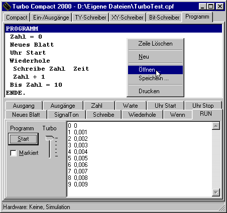 Mit der rechten Maustaste können Programme geladen und gespeichert werden.