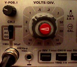 Die Eingangsempfindlichkeit steht noch auf 1 V/Skt. Mit dem